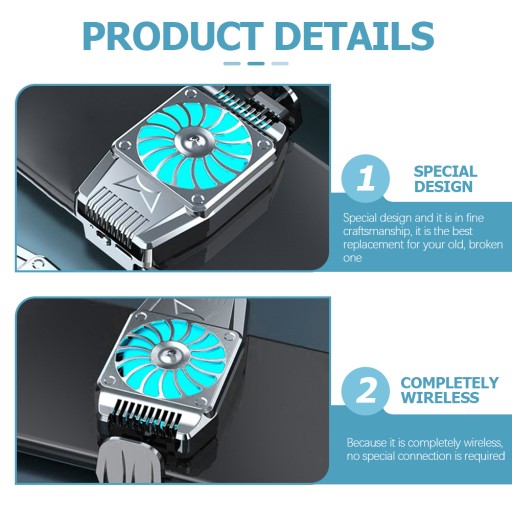 ✅ Ta lodówka do telefonu jest wyposażona w 9-łopatkowy wentylator, który może szybko się ochłodzić przy dużej prędkości i niskiej prędkości chłodzenia dźwiękiem.