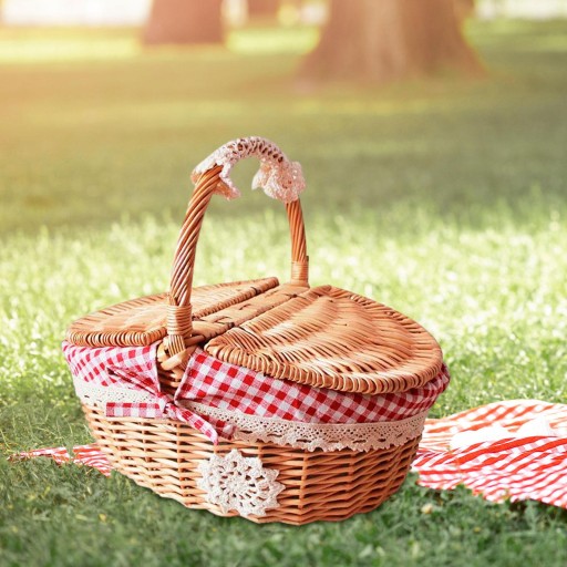 Практичная плетеная корзина для пикника с клетчатой подкладкой, которую можно стирать. Плетеный, средний красный