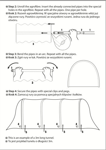 - Elementy zestawu: łuki /klipsy /kołki /agrowłóknina