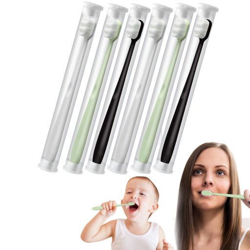 【Idealne opakowanie】 Super miękka szczoteczka do zębów składa się z 6 sztuk nano szczoteczek do zębów w kolorze czarnym, białym, zielonym i różnych kombinacjach kolorystycznych. Ilość jest wystarczająca, a różnorodność jest kompletna, wystarczająca do codziennego użytku lub wymiany, a także możesz dzielić się miniaturową ręczną szczoteczką do zębów z rodziną lub przyjaciółmi