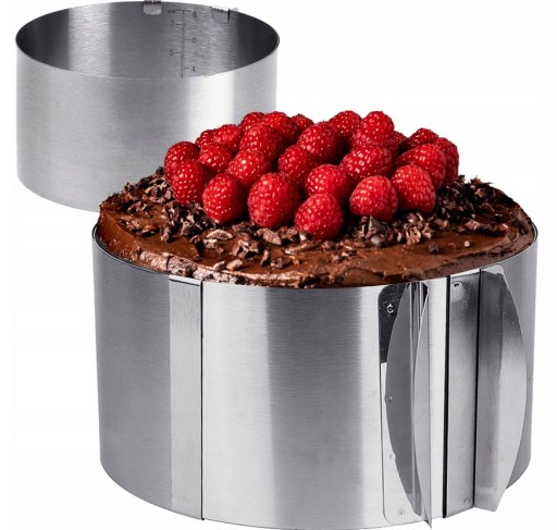 Opaska do tortu ze stali nierdzewnej sprawdzi się idealnie podczas przygotowywania ciast z galaretką, bitą śmietaną, owocami czy ciast bez pieczenia.