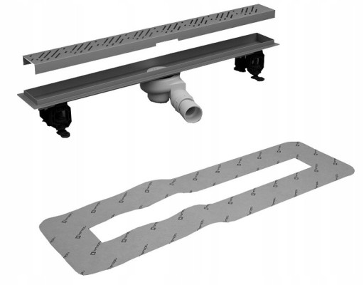 Zestaw zawiera: odpływ liniowy, ruszt , syfon, nóżki regulacyjne, mankiet z maty uszczelniającej.