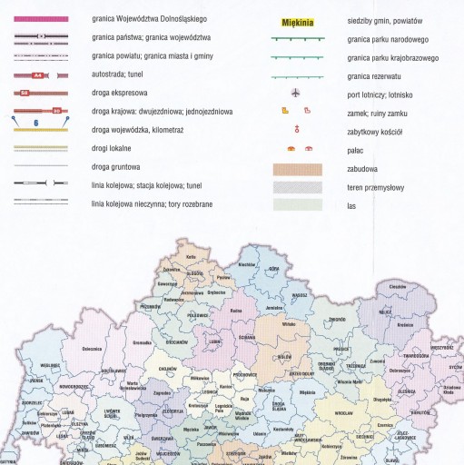 Mapa samochodowo-administracyjna zawiera m.in.: