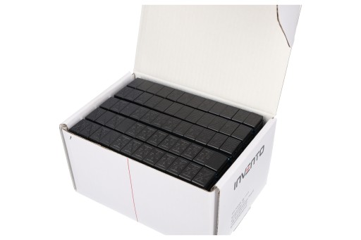 Ciężarki klejone, stalowe, do felg aluminiowych, typu SLIM, malowane w kolorze czarnym. Opakowanie zawiera 100 pasków o gramaturze 60 gram. Każdy pasek to 12 sztuk ciężarków o gramaturze 5 gram. Ciężarki o eleganckim, kwadratowym kształcie, idealnie dopasowują się do felgi gwarantując precyzyjne wyważenie felg aluminiowych. Ciężarki posiadają również szeroką niebieską taśmę, która zabezpiecza taśmę klejącą.