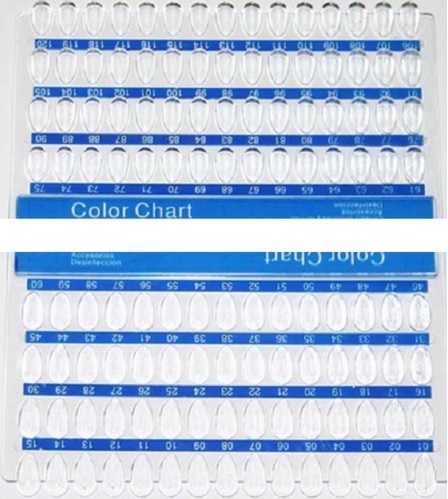 Praktyczny wzornik, wyjątkowo pomocny podczas wybierania koloru lakieru albo wzoru do stylizacji. To bardzo wygodna oraz estetyczna paleta do malowania lakierami, hybrydami czy żelami.