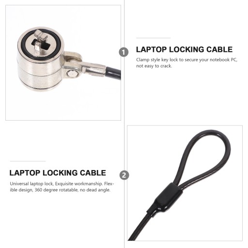 ✅Przymocuj koniec kabla do przedmiotu, podłącz klucz do zamka laptopa, obróć klucz, aby zablokować laptopa.