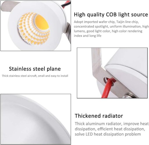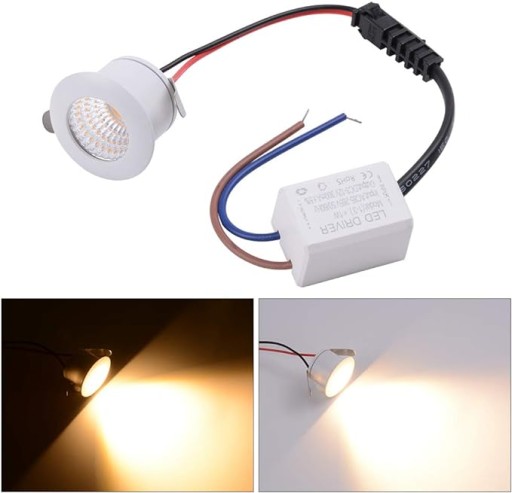 Mini LED reflektory do wbudowania. Zestaw 5 szt., 3 W. Reflektory sufitowe LED COB. Aluminiowe reflektory punktowe. Ciepła biel do szafki do szafki, kuchni, salonu [klasa energetyczna F].