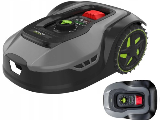 - Maszyna wyposażona została w mocne silniki napędowe oraz duże koła o specjalnym wzorze, dzięki czemu robot może wspinać się po bardzo nierównym terenie o nachyleniu do 20 stopni, a amortyzowane kosisko kopiuje nierówności terenu i chroni ostrza przed uszkodzeniem.