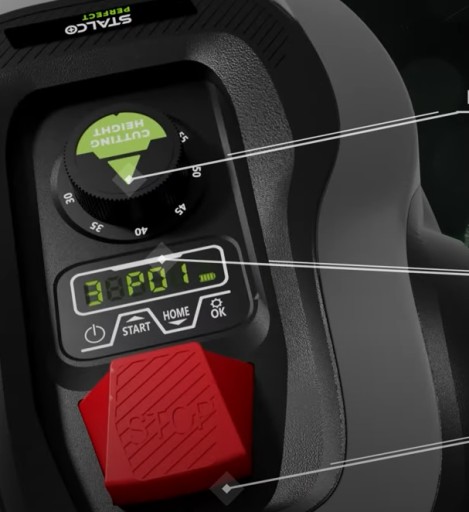 - Robot koszący został również wyposażony w ręczny system zatrzymania maszyny, dzięki czemu w razie potrzeby naciskając czerwony przycisk na górze robota koszącego można natychmiast przerwać jego pracę. Dodatkowo maszyna posiada zabezpieczenie kodem PIN co chroni ją przed nieautoryzowanym uruchomieniem lub zmianą ustawień. Robot wyposażony jest również w czujniki przechylenia lub przewrócenia, dzięki czemu maszyna wyłącza się automatycznie gwarantując wysoki poziom bezpieczeństwa w trakcie pracy.