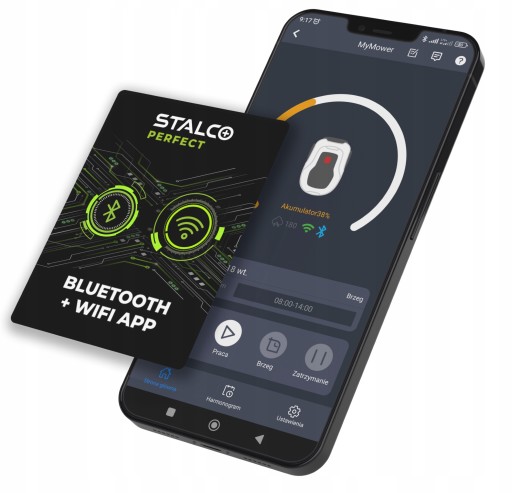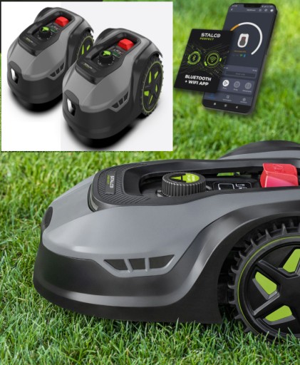 - Mobilna aplikacja umożliwia bardziej zaawansowane ustawienia oraz sterowanie robotem koszącym zdalnie przez Wifi lub Bluetooth.