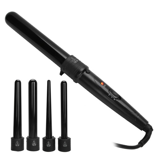 3. Podczas przełączania różdżki lokówki, projekty wtyczek można łatwo usunąć, po prostu naciskając przycisk zwalniający, aby zapobiec przypadkowemu wypadnięciu.