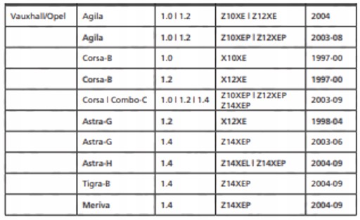 - 1,0 l 12V (K 10 B, X 10 XE, Z 10 XE, Z 10 XEP),