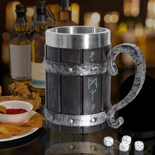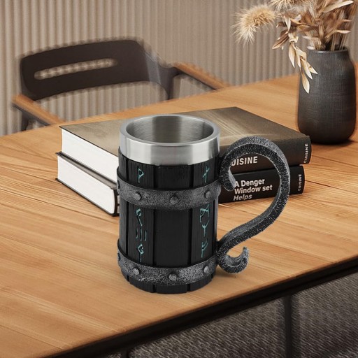 - Kufel do piwa wykonany jest z wewnętrznej części ze stali nierdzewnej i obudowy z żywicy, jest nietłukący, nierdzewny, bezpieczny i zdrowy do picia, ma dobrą trwałość i odporność na zużycie, długi czas użytkowania.