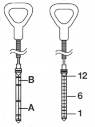 - 2 bagnety do pomiaru poziomu oleju w silnikach: