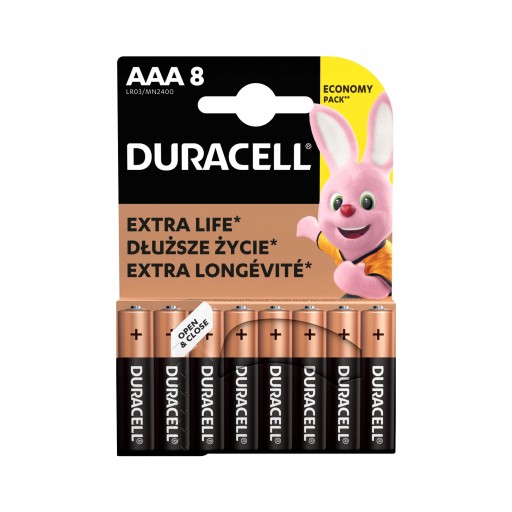 8x DURACELL bateria alkaliczna AAA R3 1,5V