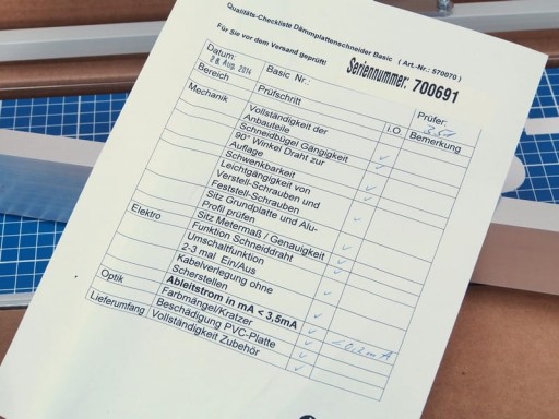 Każda zamówiona maszyna jest sprawdzona w Niemczech: test mechaniczny, test elektryczny, test optyczny, kompletność zestawu.