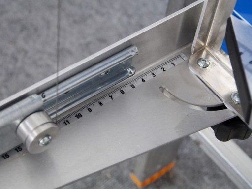 Kolejna podziałka została umieszczona na ruchomym ramieniu, którym wykonuje się cięcie, dzięki czemu w prosty sposób można ciąć styropian tylko do określonej głębokości (żeby wykonać np. rowek na przewody):