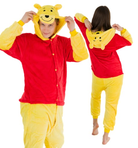KUBUŚ PUCHATEK to jedna z ulubionych postaci zarówno dzieci jak i dorosłych. Teraz sam masz okazję stać się Kubusiem Puchatkiem. Kigurumi z bajkową postacią to idealny prezent dla najbliższych lub przyjaciół. Kombinezon świetnie sprawdzi się również w domu jako wygodny dres, piżama lub strój na jesienno-zimowe wieczory. Kigurumi wykonane jest z wysokiej jakości materiału, która jest ciepła, bardzo miła w dotyku oraz delikatna dla skóry, a także bardzo wytrzymała jeśli chodzi o częste pranie. Posiada kaptur z imitacją głowy Kubusia Puchatka. Z tyłu posiada zamek błyskawiczny, który ułatwia skorzystanie z toalety- nie trzeba ściągać całego kombinezonu. Wygodne zapięcia- guziki, luźny krój, ściągacze przy rękawach i nogawkach sprawiają, że w takim kombinezonie będziesz czuć się bardzo wygodnie i swobodnie, ponieważ nie krępuje ruchów. Na pozostałych naszych aukcjach znajdują się inne rozmiary i modele. Zapraszamy do zakupów!