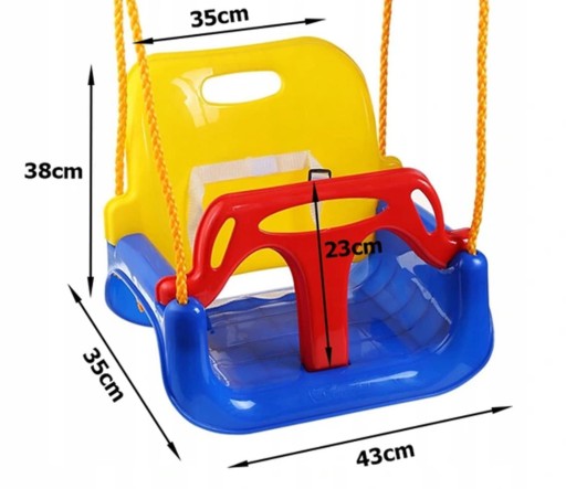 - huśtawka z oparciem i zabezpieczeniem z przodu dla dzieci od 6 miesiąca życia