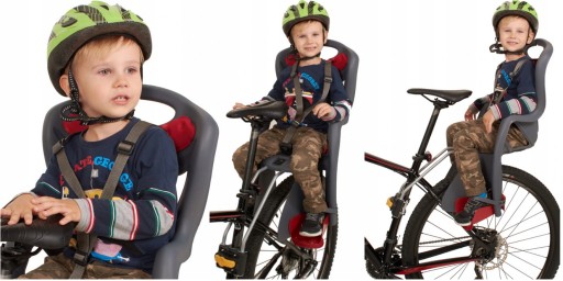 montaż na giętkim, stalowym pałąku, który doskonale amortyzuje wszelkie wstrząsy zapewniając dziecku wysoki komfort podczas wycieczek rowerowych