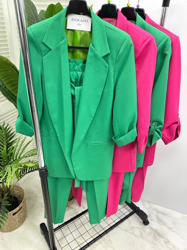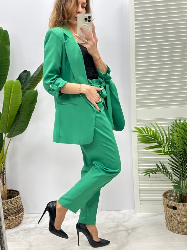 Markowy garnitur wykonany z eleganckiego materiału będący idealną alternatywą dla sukienki. Niesamowity komfort noszenia. Materiał premium - szyty w Polsce.