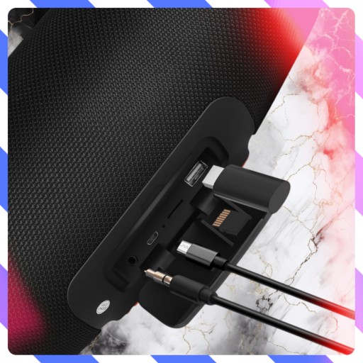 Konstrukcja wzmocniona na wstrząsy, klasa wodoszczelności IPX7 pozwala na swobodne użytkowania podczas opadów deszczu w środowisku o dużym zadymieniu oraz zawartości kurzu. Głośnik jest świetnym wyborem dla ciebie ale również nadaje się jako PREZENT dla bliskich i miłośników muzyki oraz imprezowiczów .