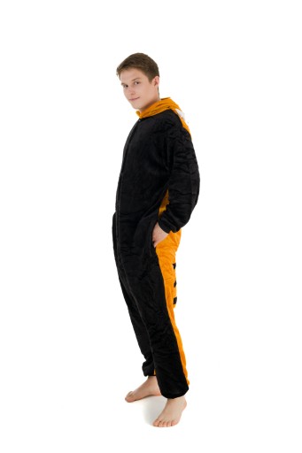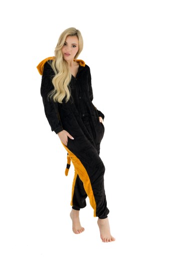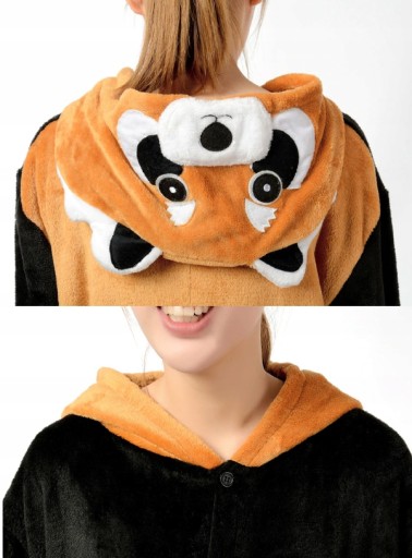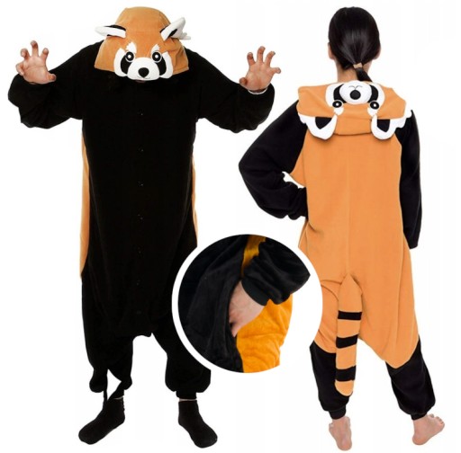 - Jesteś miłośnikiem uroczego misia Pandy? Teraz masz okazję stać się wyjątkowym misiem- PANDA CZERWONA. Kigurumi to jednoczęściowy strój z kapturem, który ma wiele zastosowań- zarówno jako wygodna piżama, dres do domu, czy przebranie na różnego rodzaju imprezy ze znajomymi. Idealnie sprawdza się jako prezent dla najbliższych! Pomarańczowo-rudy kombinezon wykonany jest z miłej w dotyku oraz ciepłej mikrofibry, która jest przytulna. Wygodny luźny krój, kieszenie oraz ściągacze przy rękawach i nogawkach sprawią, że będziesz się czuł bardzo wygodnie i swobodnie.