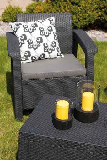 Ten zestaw mebli ogrodowych świetnie sprawdzi się na balkonie, w małym ogrodzie lub na tarasie. Doskonale nadaje się do codziennego użytkowania, dzięki solidnej budowie i wysokiej jakości wykonaniu. Nie musisz martwić się o przechowywanie zestawu Corfu, ponieważ może być pozostawiony na zewnątrz przez cały rok.