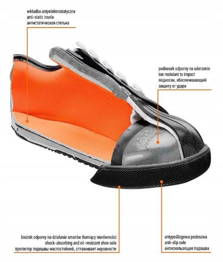 Półbuty robocze NEO (nr ref. 82-114) w rozmiarze 43 to podstawowa ochrona podczas pracy. Cholewka wykonana z przewiewnego materiału. Antypoślizgowa podeszwa wykonana z pianki EVA pokrytej gumą zapewnia wysoki komfort i skuteczne amortyzowanie wstrząsów, gwarantuje bezpieczeństwo i wygodę. Tył buta wzmocniony tworzywem oraz metalowy nosek chronią przed urazami mechanicznymi. Dzięki miękkiemu wykończeniu wewnątrz buta komfort pracy pozostaje na wysokim poziomie. Oznaczenie CE to gwarancja bezpieczeństwa, dowodzi, że produkt spełnia wszystkie unijne wymagania. Marka NEO spełnia oczekiwania profesjonalistów.