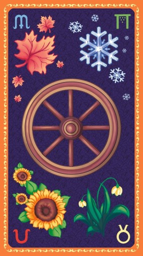 Tarot ten prowadzi nas przez zaczarowane miejsca, gdzie Natura, boska kapłanka, mądrze organizuje i zarządza upływającym czasem. Jasne kolory łąki okrytej płaszczem wiosennych kwiatów o słodkim zapachu, światło i dobroczynne ciepło letniego słońca, harmonijny i pełen wdzięku taniec pożółkłych liści opadających jesienią z drzew, stłumiona cisza zimowej nocy otoczonej czarem śniegu.