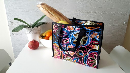 Praktyczna torba, z mocnego tworzywa, nieprzemakalna, w wielu modnych, kolorowych wzorach.