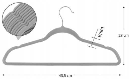 ✅ Materiał: Wieszaki są pokryte welurowym materiałem, który skutecznie zapobiega zsuwaniu się ubrań, co pozwala zachować ich doskonały wygląd i uniknąć pognieceń.