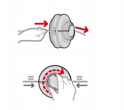 - Przekręcić przycisk zgodnie z wskazówkami zegara - żyłka nawija się do środka szpuli.