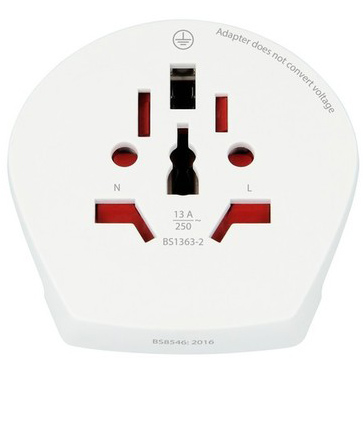 - Gniazdo adaptera: Typ G (brytyjskie); Typ A (amerykańskie); Typ J (szwajcarskie); Typ L (włoskie); Typ I (australijskie)