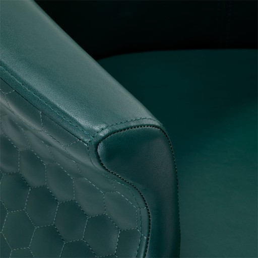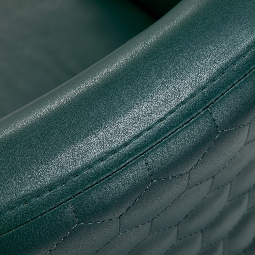 Ciekawy wizualnie mebel wypełniono trwałą, odporną na odkształcenia pianką, z kolei obicie wykonano z przyjemnej w dotyku skóry syntetycznej w odcieniach zieleni. Zastosowane materiały sprawiają, że sprzęt jest trwały, komfortowy w użytkowaniu, odporny na wilgoć oraz łatwy do czyszczenia. Ozdobne pikowanie w pięciokąty oraz przykuwający uwagę kształt nadają mu niepowtarzalnego charakteru. Fotel fryzjerski Gabbiano Wersal wyróżnia wyrafinowany design, który sprawia, że fotel będzie doskonale prezentować się w wielu eleganckich salonach.