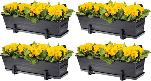 4x DONICZKA SKRZYNKA BALKONOWA + 4x PODSTAWKA + 4x UCHWYTY antracyt 60cm