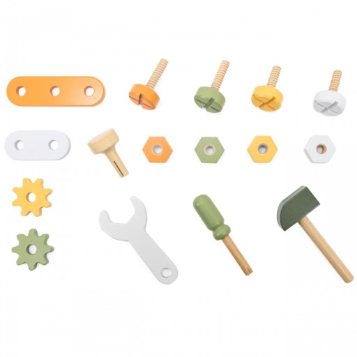 => Dzieci mogą poznawać różne narzędzia i rozwijać umiejętności obracania, uderzania i dopasowywania. Zabawa w majsterkowanie wspomoże rozwój zdolności manualnych, zaciekawi i pobudzi wyobraźnię dziecka.