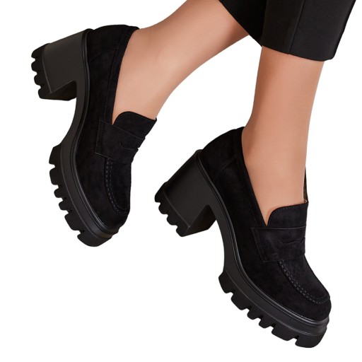 Przepiękne damskie mokasyny na wysokim słupku. Model w tylu casual i jest wykonany ze skóry ekologicznej zamszowej i wkładki ze skóry naturalnej. Nosek zaokrąglony. Idealna baza dla wielu codziennych looków!