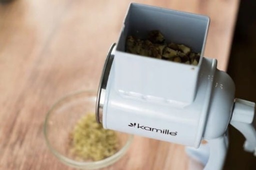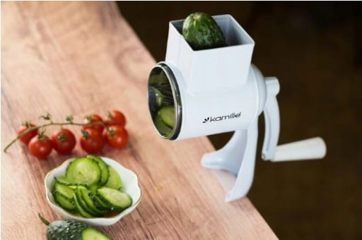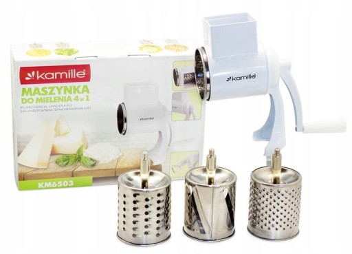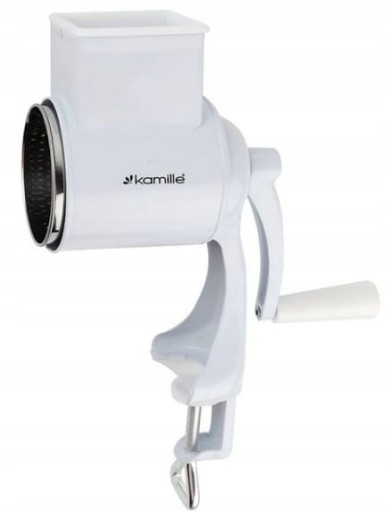 KAMILLE KM 6503 - ręczna maszynka do mielenia, szatkowania, rozdrabniania, krojenia warzyw, orzechów, serów i owoców. Wykonana z wytrzymałego, powlekanego metalu lakierowanego metodą proszkową w kolorze białym.