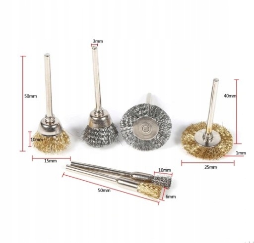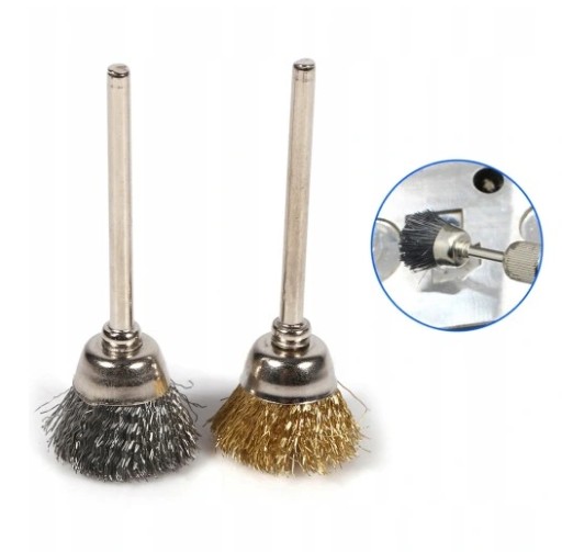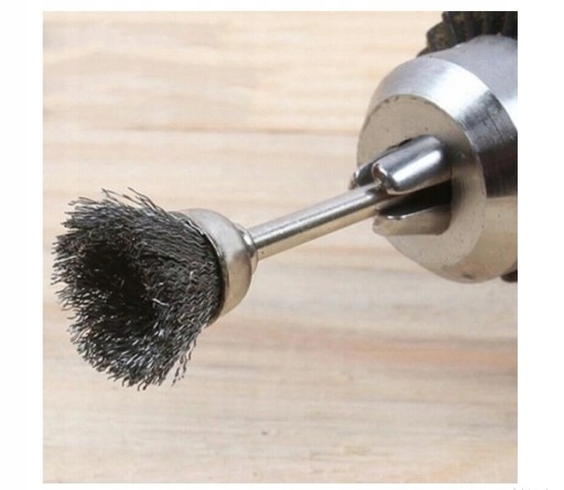 - Rozmiar szczotki drucianej w kształcie kubka (dł. X szer.): Ok. 50 x 15 mm / 2 x 0,6 cala