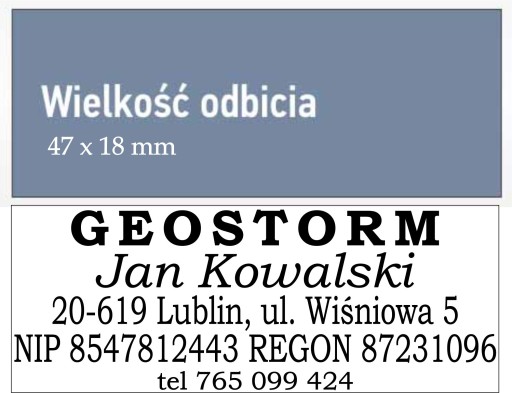 - treść wykonana na gumie grawerskiej bezzapachowej o grubości 2,3 mm, która zapewni wyraźne i ostre odbicie treści.
