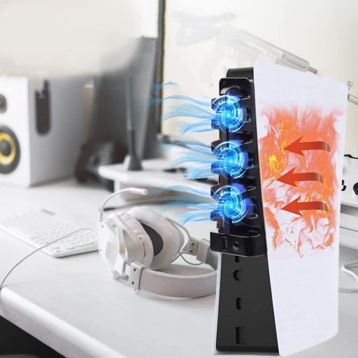 🎮🎮 【Wbudowane 3 wentylatory chłodzące】: Prędkość wentylatora: 5500 ± 1100 obr/min, a każdy wentylator przy najwyższym ustawieniu ma wydajność 4,9 cfm. Szybkie chłodzenie głównych komponentów PS5 jest bardzo ważne.
