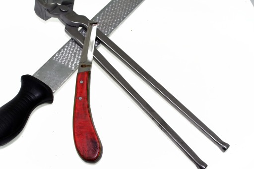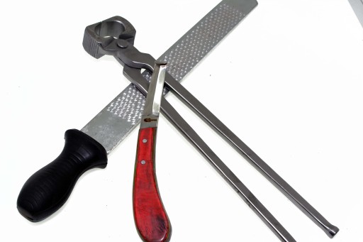 Zestaw do korekcji kopyt i racic w skład wchodzi bardzo ostry pilnik cęgi 38cm wykonane z bardzo dobrej stali kwasowej ,nuż dwustronny ostry rączka wykonana z drzewa bukowego.