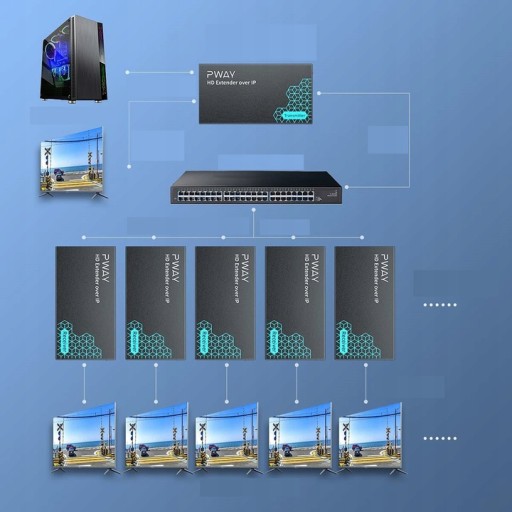 Przedłużacz HDMI PWAY od jednego do wielu monitorów przez przełącznik Ethernet, Full HD 1080 P przy 60 Hz Extended Video