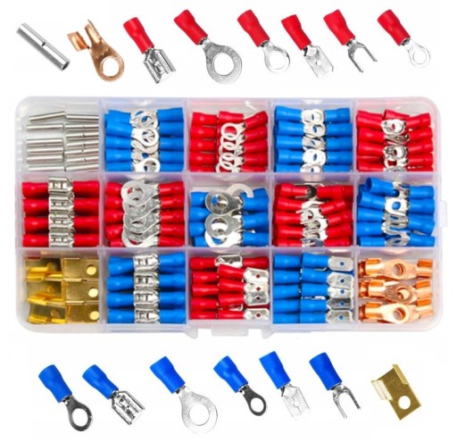 Izolowane konektory zaciskane polskiej marki Kraft&Dele o modelu KD10488 dostarczone w wygodnym solidnym opakowaniu ułatwiającym segregację na poszczególne rodzaje konektorów.