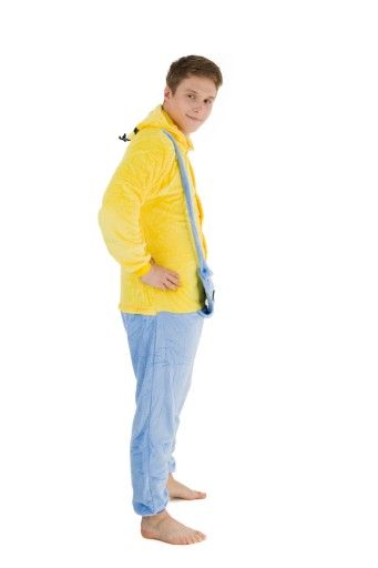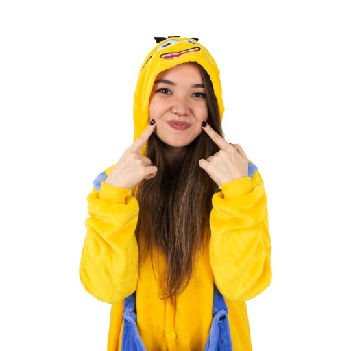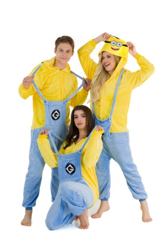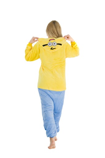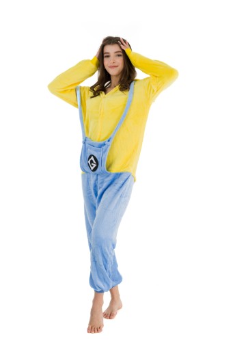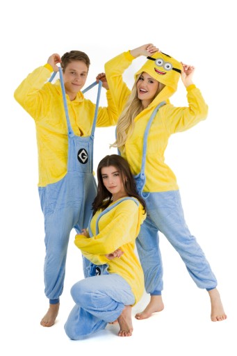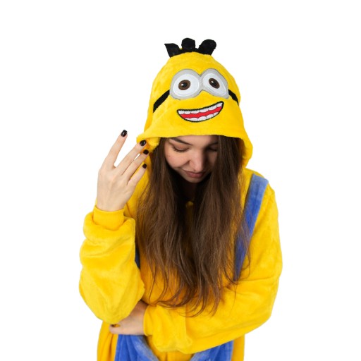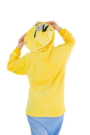- Jeśli jesteś fanem MINIONKÓW, teraz masz okazję zostać jednym z nich! Kigurumi to jednoczęściowy strój z kapturem, który ma wiele zastosowań- zarówno jako wygodna piżama, dres do domu, czy przebranie na różnego rodzaju imprezy ze znajomymi. Idealnie sprawdza się jako prezent dla najbliższych i przyjaciół! Zółto-niebieski kostium zapinany jest na guziki, posiada również kaptur z imitacją głowy Minionka. Wykonany jest z wysokiej jakości materiału- mikrofibry, która jest przytulna i bardzo ciepła. Z tyłu posiada również zamek błyskawiczny, który ułatwia skorzystanie z toalety- nie trzeba ściągać całego kombinezonu.Wygodny luźny krój, kieszenie oraz ściągacze przy rękawach i nogawkach sprawią, że będziesz się czuł bardzo wygodnie i swobodnie.