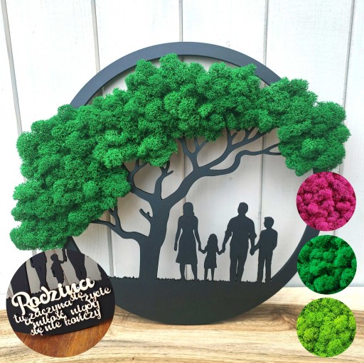 Dekoracja DRZEWO ŻYCIA z mchem chrobotkiem RODZINA 34cm mech chrobotek ażur