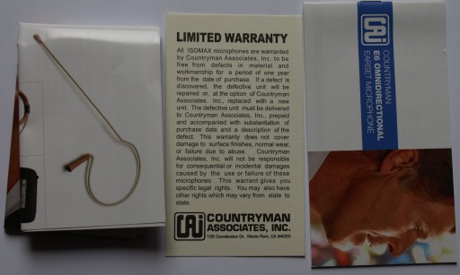 Przedmiotem sprzedaży jest nowy, nieużywany, kompletny zestaw pojemnościowego, nagłownego mikrofonu typ WCE6T amerykańskiej firmy Countryman.