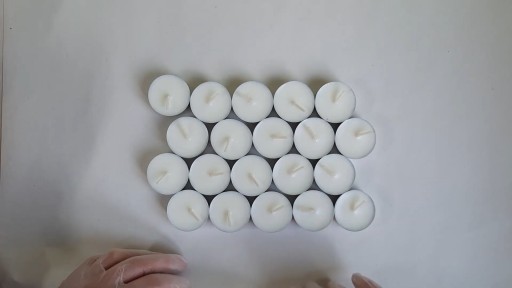 Aukcja dotyczy 40szt. naturalnych tealightów (podgrzewaczy) wykonanych z wosku sojowego.
