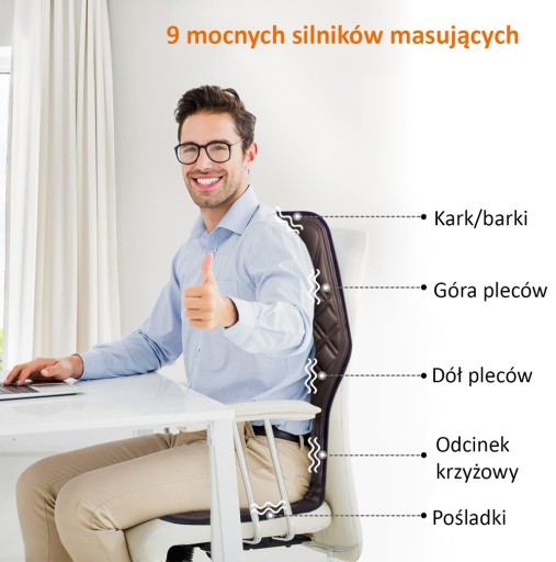 Urządzenie posiada aż 9 dużych, mocnych silników masujących które głęboko rozluźniają zmęczone mięśnie.